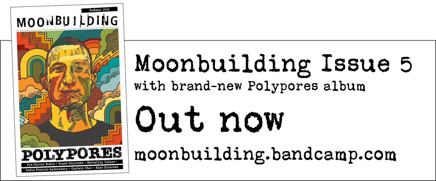 An edited version of our interview with the author appears in the brand-new issue of Moonbuilding, which is out now. Have we mentioned it? Ha! The print version of all this, a lovely 48-page A5 zine full of interviews, reviews, release rounds ups, is available right now at… moonbuilding.bandcamp.com