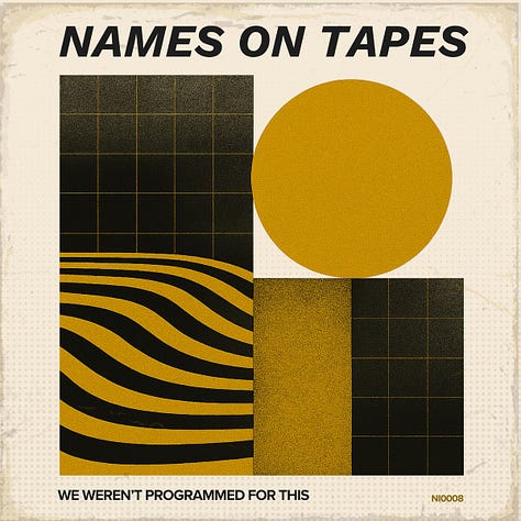 Names On Tapes’ ‘We Weren’t Programmed For This’ (No Input) comes with some seriously lovely artwork and a quote from the artist that should have you pressing play chop-chop. “We wanted to make something that sounded like it was disappearing as you listened,” they say, “songs that felt like they were found on a damaged tape, but still carried warmth, fragility and connection”. You’re in already aren’t you? Names On Tapes is a London-based collaboration between Neil Kleiner, Four Tet cohort and Lo Recordings’ Dark Captain Light Captain, and experimental guitarist Stacey Hine from the long-lost The Sailplanes. And guess what? Yup, it sounds just like they say. Mostly. Opener ‘End Scene’ seems to evaporate as the sound grazes your ears, while ‘Monolith’ feels like waves washing gentle on your shores. But it’s not all like that. They say “Listen quietly. Preferably late”, but if you did that with some of what’s here you’d fair shit your pants. Some of it loud and noisy, like ‘In Case You Come Back’ which crackles and glitches as if it’s plugged in somewhere with a dodgy lead that could drop out at any moment. There’s a great distant guitar twang and very cool synth swell on ‘Dead Language’ a track that is theme tune-ready, while ‘Default State’ exudes a glitchy sort of peace and calm before a tune, tugging a lovely beat with it, wriggles from its grasp. Love this.